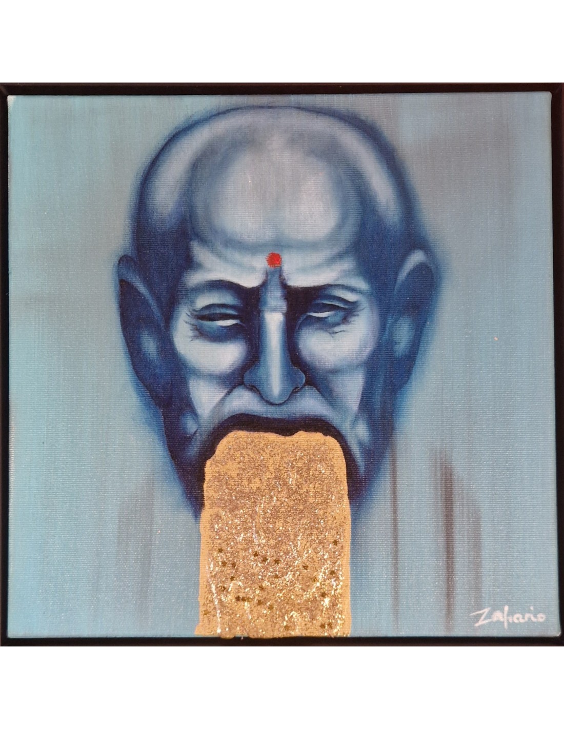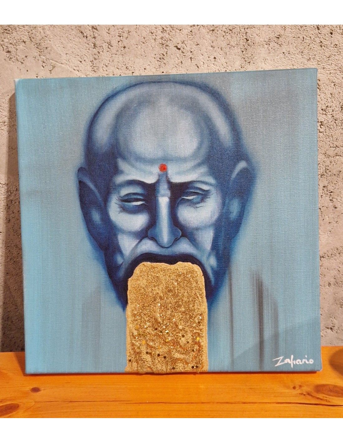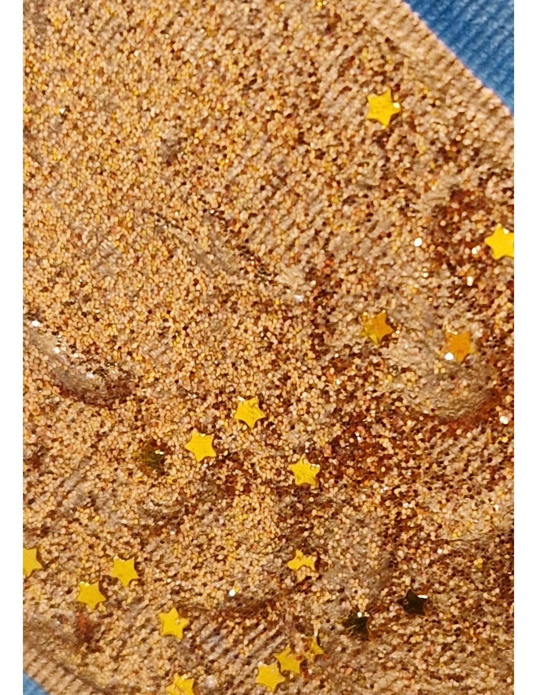 "Mistyczny Anonimowy Artysta" Rok 2024.Obraz olejny 30x30. Piękny błyszczący złoty brokat, dużo złota i złote gwiazdki które układają się w kosmosie.